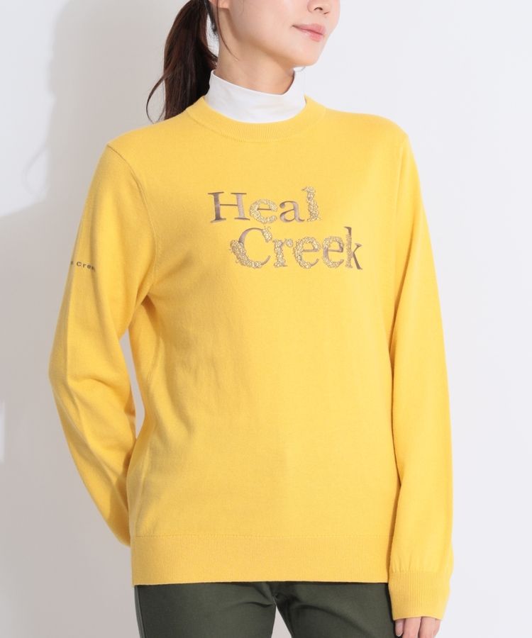 フラワーロゴ刺繍クルーネックニット