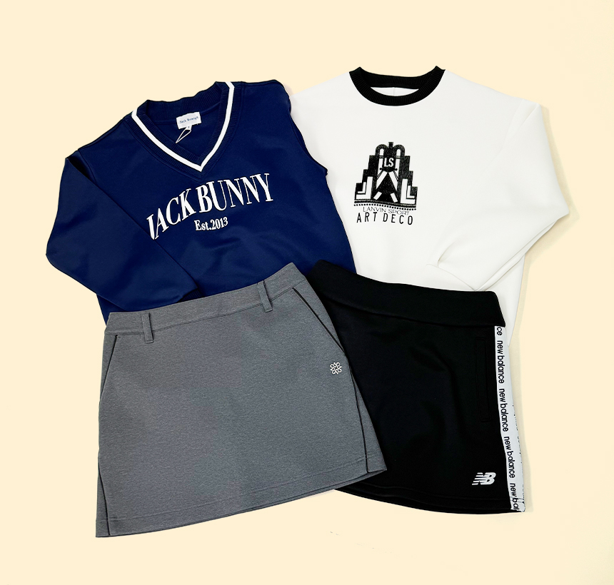 秋は、首元すっきりのクルーネックがおすすめ☆アウターなしでラウンドをする時期は、重ね着を楽しんでワンランク上のコーデに♪
