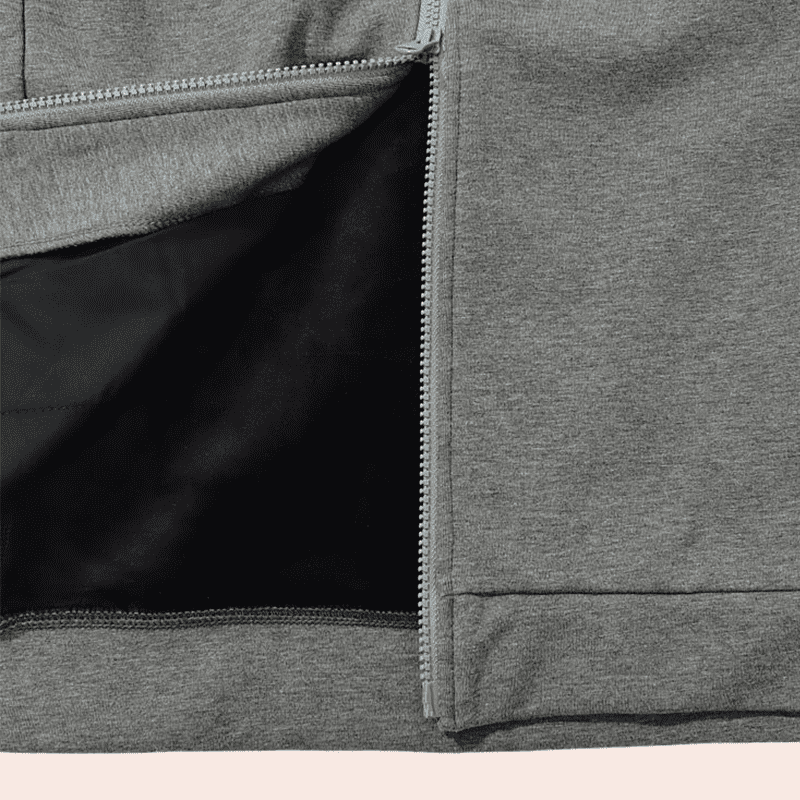 ダブルジップの下のジップを開けることで、スイング時や前傾姿勢でも動きやすい◎