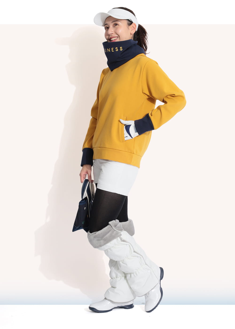 同素材のネックウォーマーは、フーディーと合わせるのはもちろん、単品でもお使いいただけます。