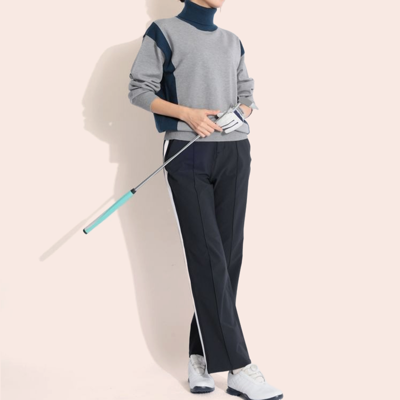 サイドに施したスウェット切替がほどよく伸びて動きやすく、ラウンド中も快適なはき心地。