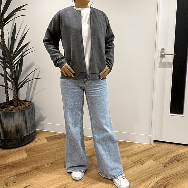 裏起毛ノーカラーブルゾンと合わせて着るのもおすすめ!