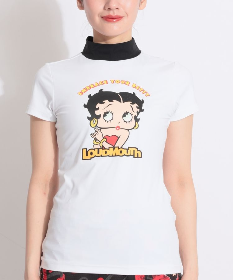 すっきりとしたモックネックでフロントにはロゴプリントが