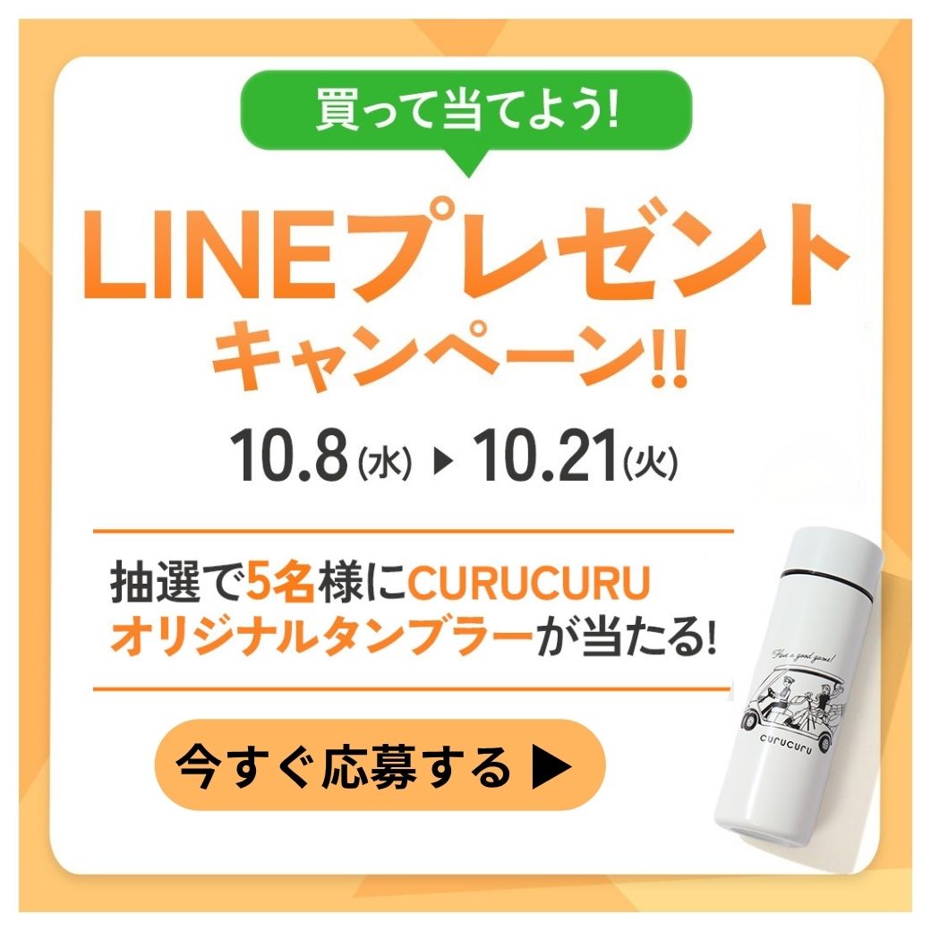 curucuruSELECTの『LINEお友だち登録』をされている方限定で、対象期間中にご購入をいただいた方の中から抽選で5名様に限定ミニタンブラーが当たるチャンス!