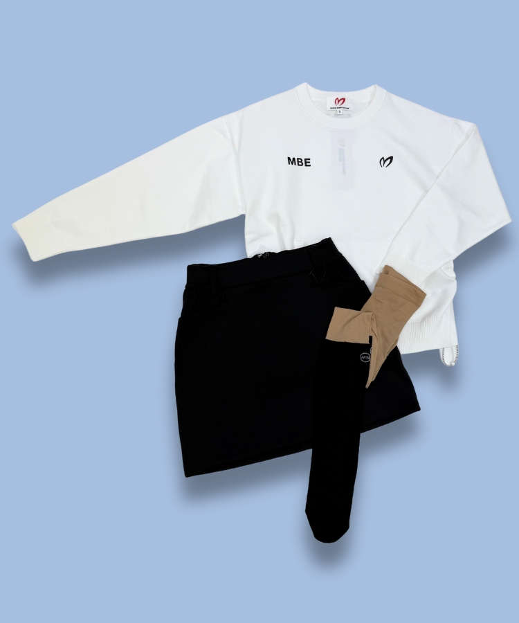 暑がりな私は日中日が出て動き回っていると暑くなるので、一枚で主役になる長袖ポロシャツをチョイス! スカートはプリーツスカートを合わせて大人かわいいコーデに。 ホワイトのスカートには重くなりすぎないグレーのハイソックスを合わせるのがおススメ!