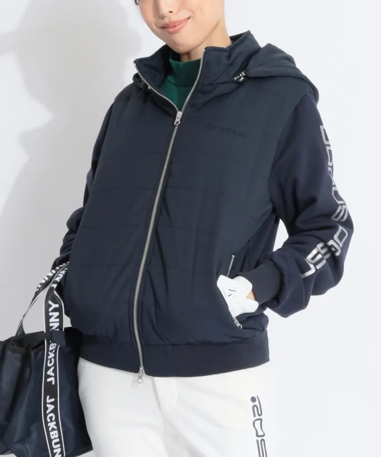DC 異素材コンビフルジップ取り外しフードブルゾン