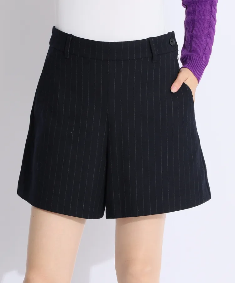 BE ピンストライプ柄起毛ショートパンツ