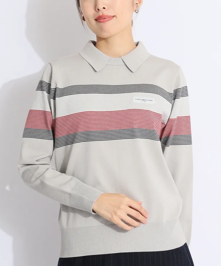 TH トリコボーダーレイヤード衿付きニット