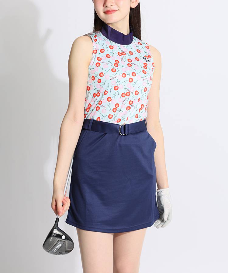 EF チェリー総柄ベルト付きノースリーブワンピース