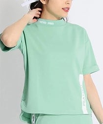 ドライタッチな風合いをキープし濡れ色を抑制する機能も搭載したモックネックカットソーは、凹凸感のある生地で肌離れが良い上にストレッチ性もありゴルフプレイの様々な動きに対応◎。