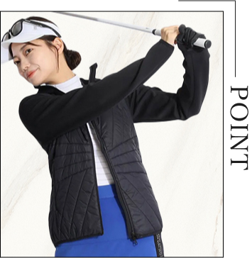 ジェイリンドバーグらしいスポーティーでスタイリッシュな中綿ブルゾンは、まるで羽毛のように柔らかく、暖かい機能素材『PRIMALOFT』を使用。軽くてかさばらないので、荷物が増えがちな冬ゴルフで重宝する1枚。