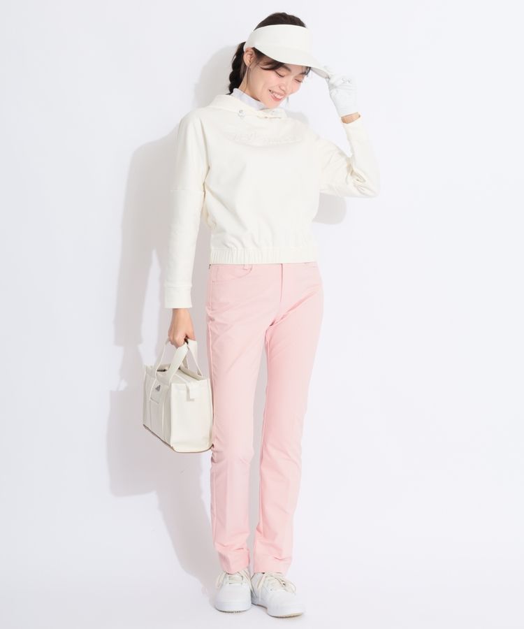 軽くてさらっと。風を通しにくく、秋のラウンドにちょうどいい一枚。 防風性とストレッチ性を備えた特殊素材で、動きやすさも抜群! ネックのVラインやライン入りロゴが、スポーティーなアクセントに。