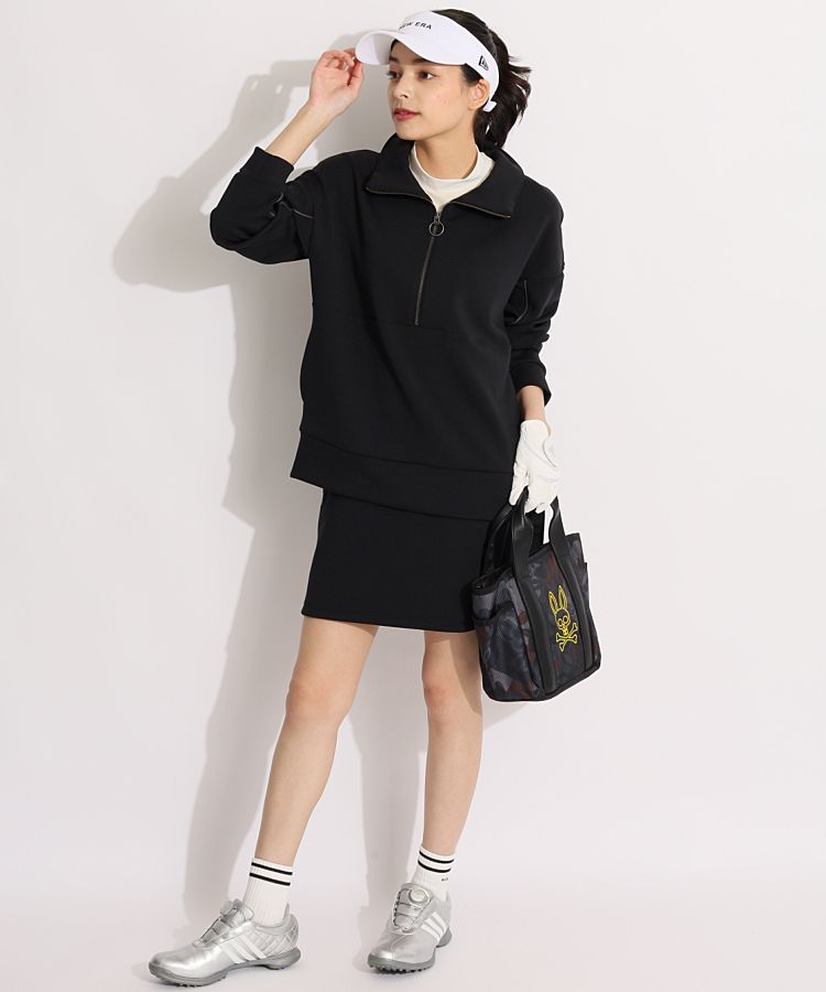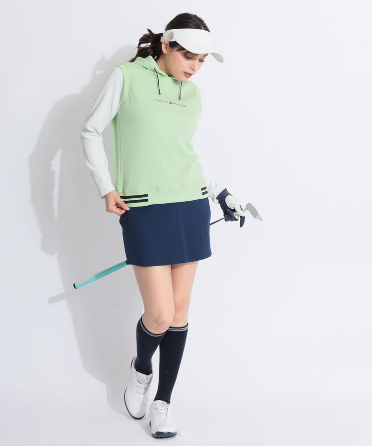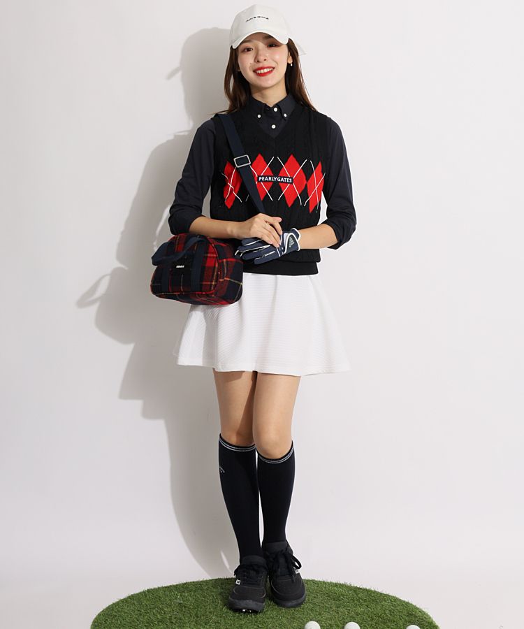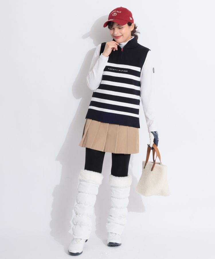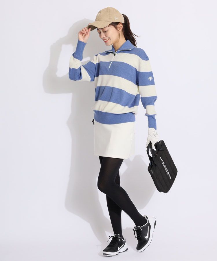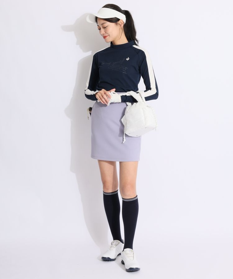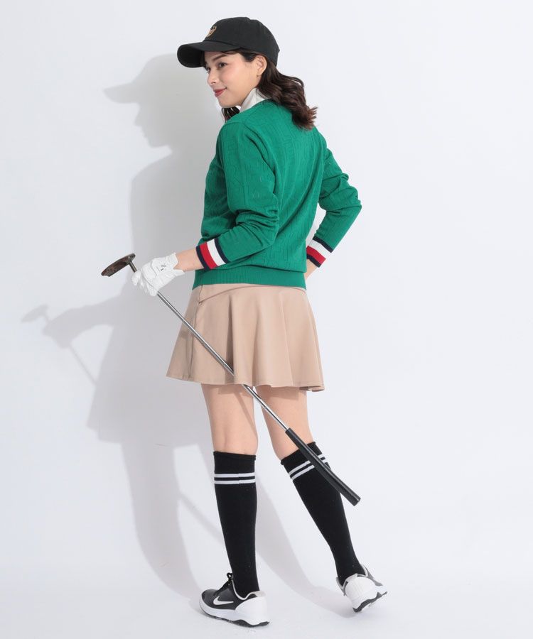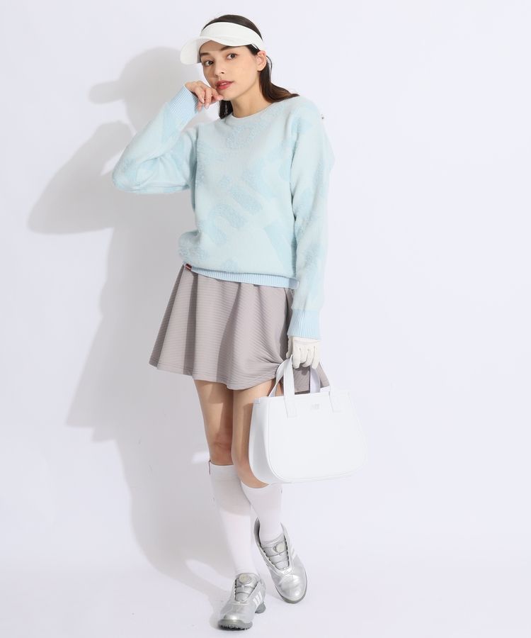 動くたびにふんわり揺れるフレアシルエットが可愛い! ボーダーステッチ入りのキルトジャガード素材で、無地でもしっかり季節感を演出します。 ヒップと脚のラインをさりげなくカバーしてくれるのも嬉しいポイント。