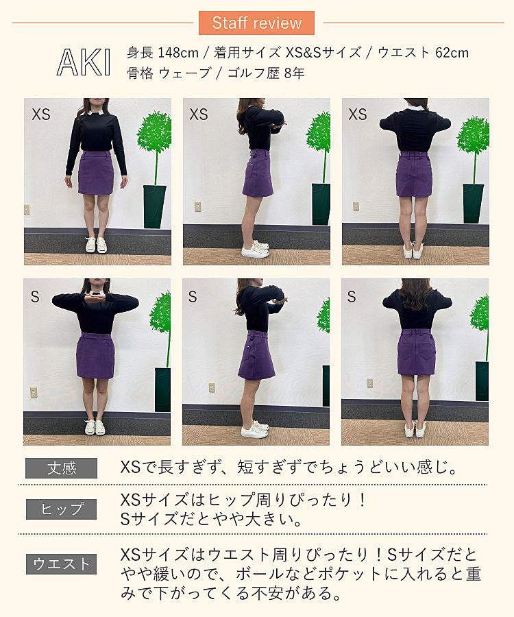 Sサイズだとウエストがきついため、Mサイズを選びます。