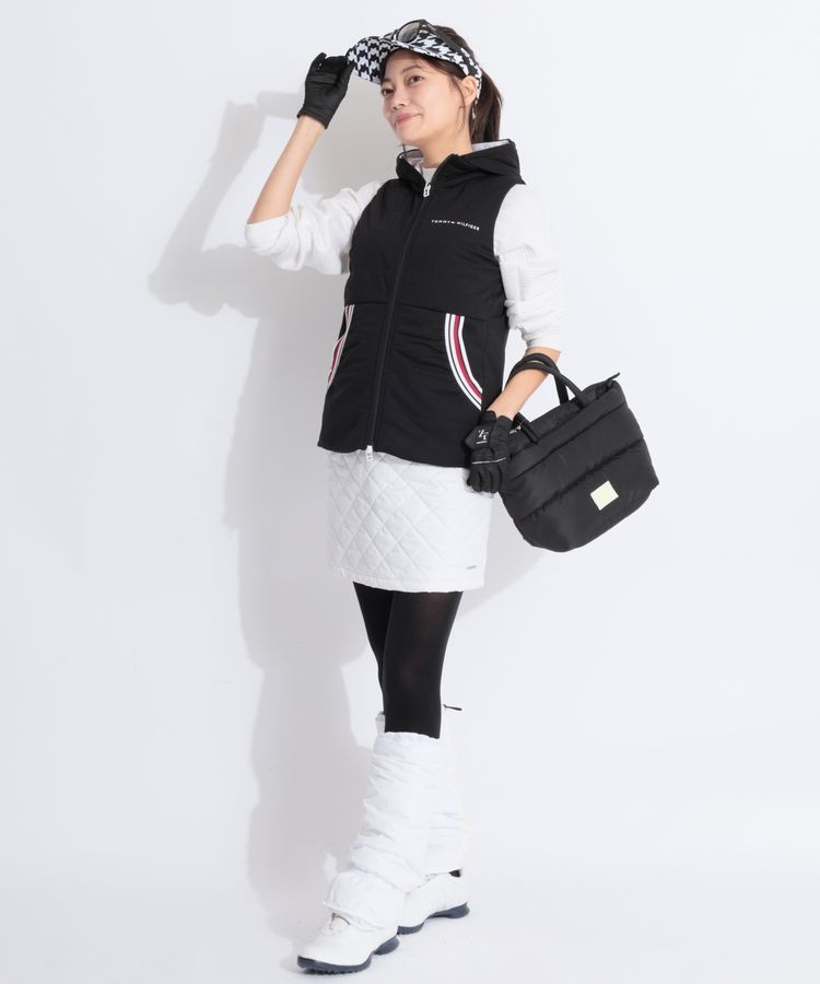 ハイウエストデザインがエレガントな印象を与える中綿キルトスカート。 少し長めの着丈で大人っぽく、さりげない光沢感のあるタフタ素材が上品な高見えを演出します。