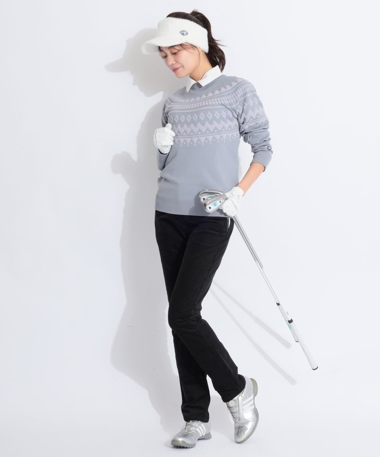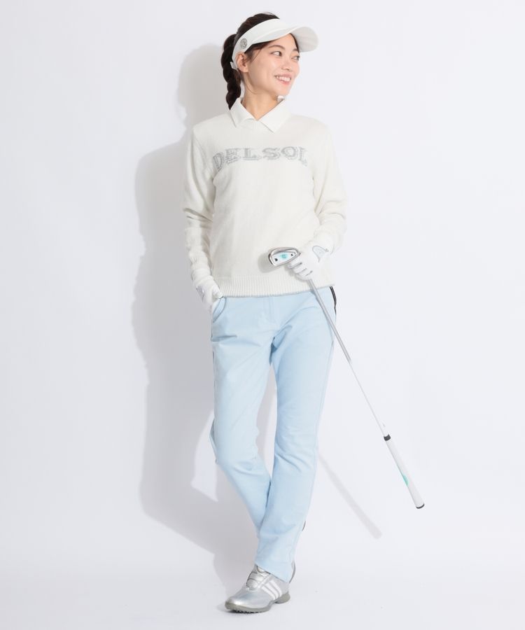 サイドのスウェット切替がほどよく伸びて、ラウンド中も快適なはき心地。 サイドの縦ラインで脚長効果も抜群。 上品に見えるやや長め丈で、大人のゴルフスタイルにぴったりです◎ サイズはS〜LLまで展開しています。