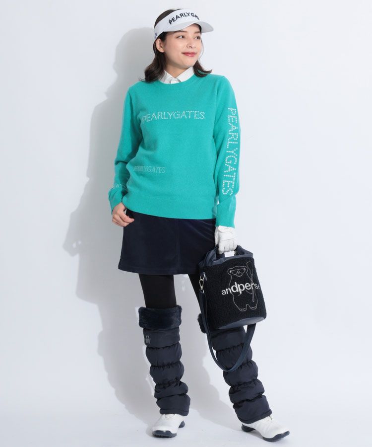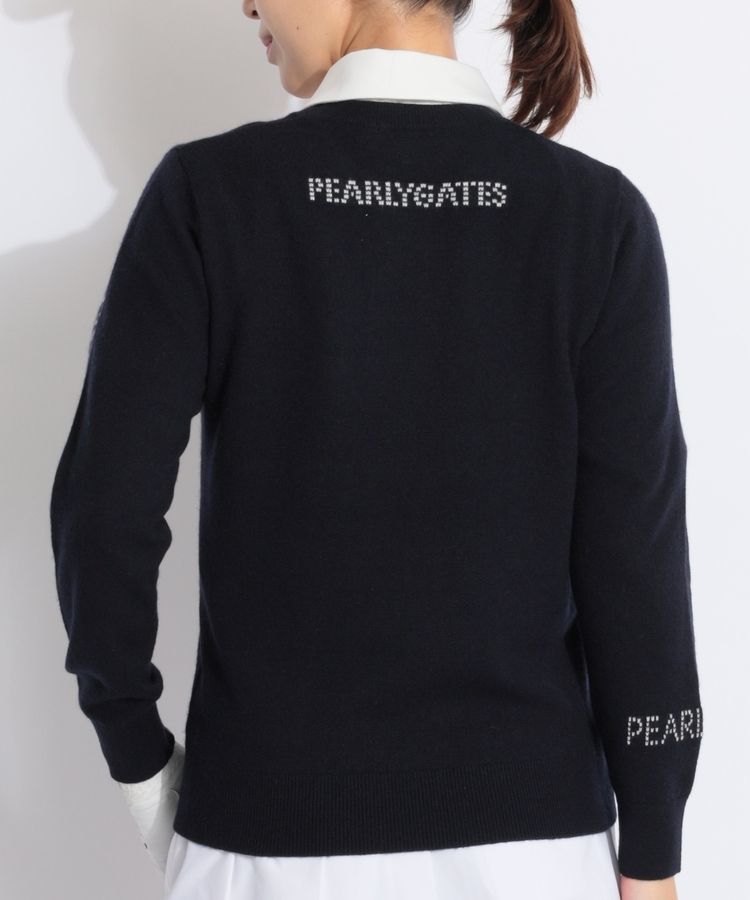 カシミヤ100%のしっとり柔らかな肌触りが際立つ上質クルーネックニット。 ストレッチ性が高く、前後ロゴ&袖ロゴでパーリーゲイツらしく品よく主張。