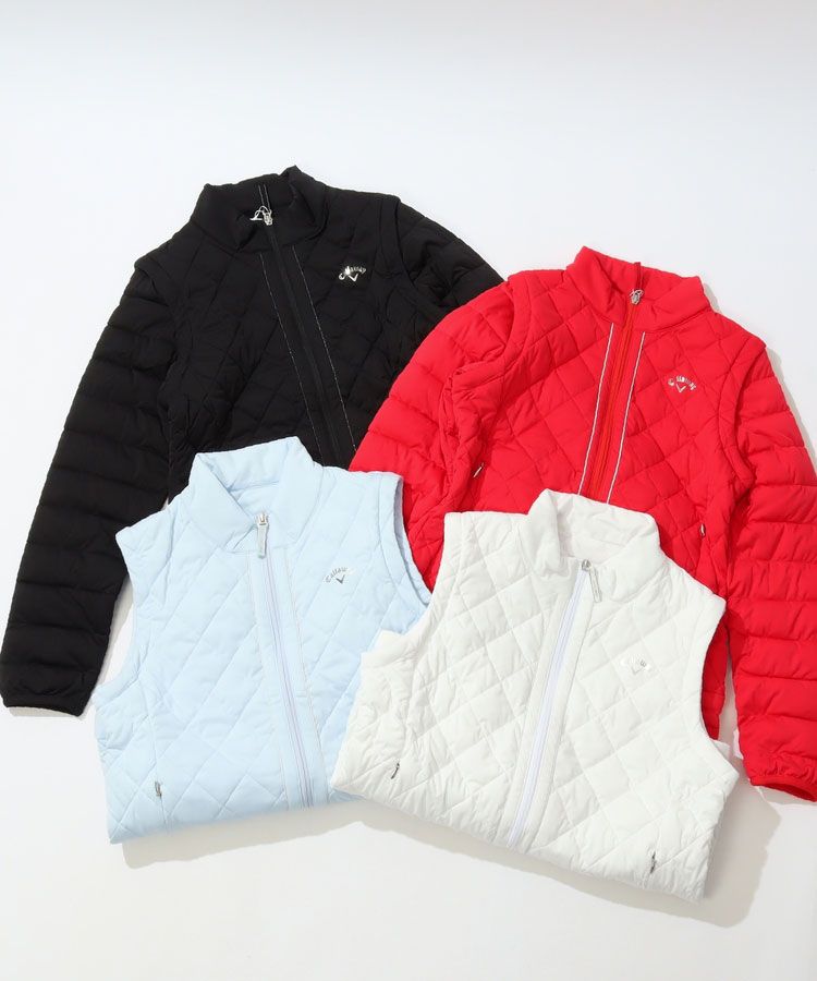 袖を外してベストにもなる2WAY中綿ブルゾン。 軽くて暖かく、ストレッチ・防風・撥水で冬ラウンドに頼れる1枚。 ラメラインが上品なアクセントに。