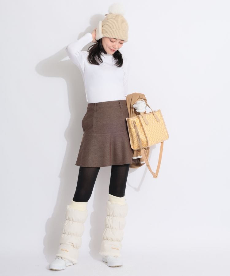 Mサイズ着丈42cmの膝に近い長め丈。ふんわりしたフレアラインで太ももまわりを自然にカバー◎ 防風蓄熱×裏フリースのボンディング素材で冬も暖かく、ウエスト後ろはトリコロールゴムでフィット感も抜群です。