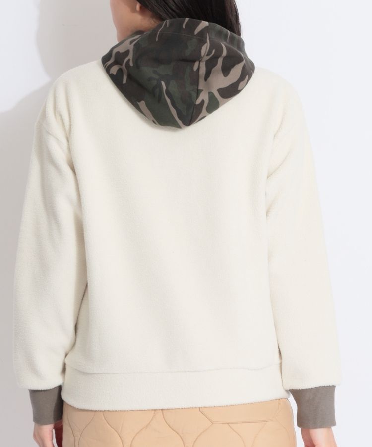 カモフラ総柄のフードがポイント!フリース素材で暖かい!