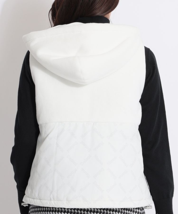 滑らかなフェイクファーとタフタ調の異素材切替で、カジュアルにもキレイめにも着れる◎