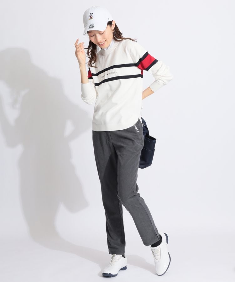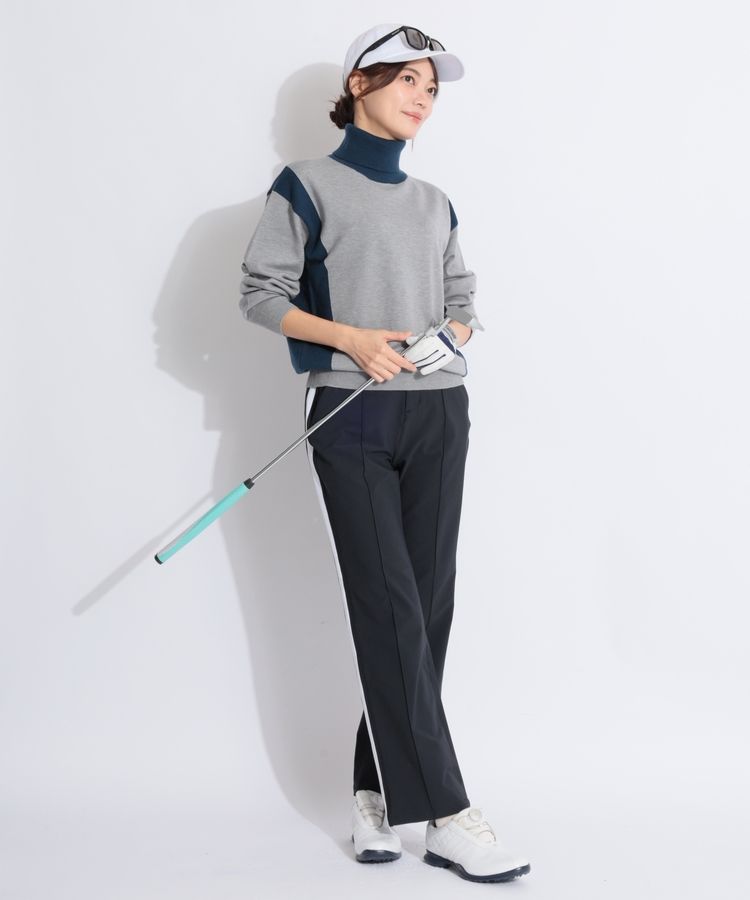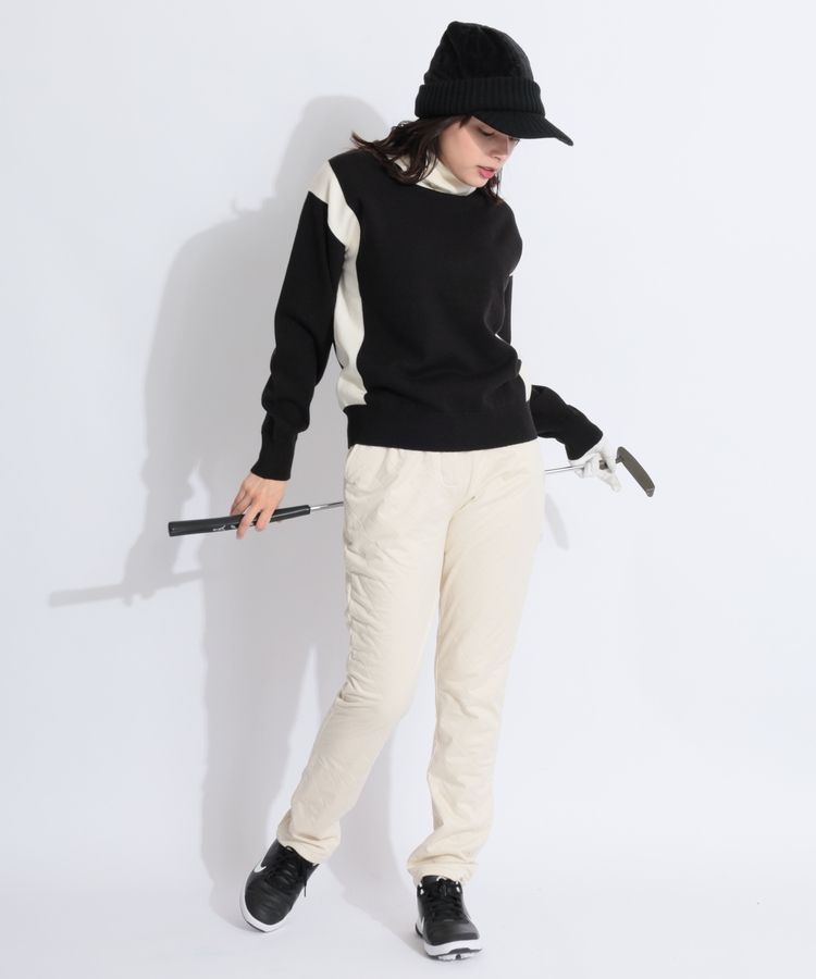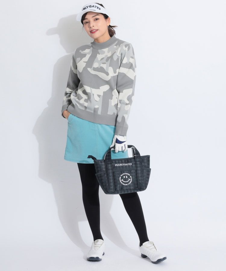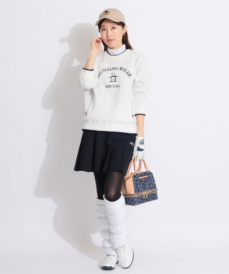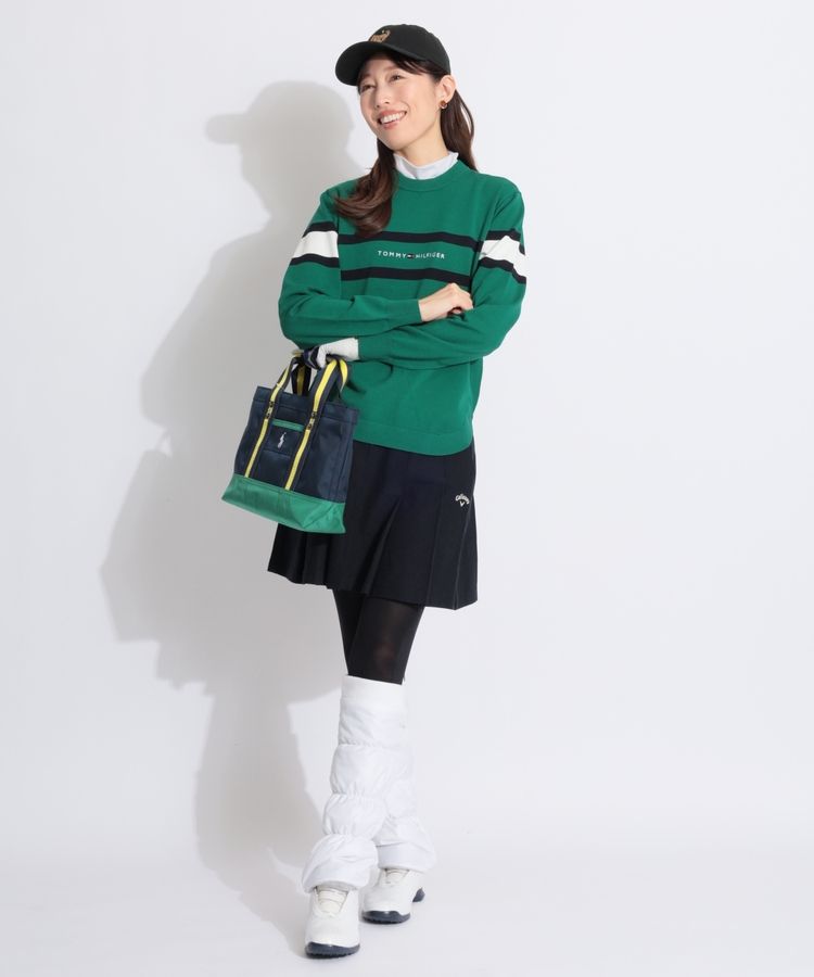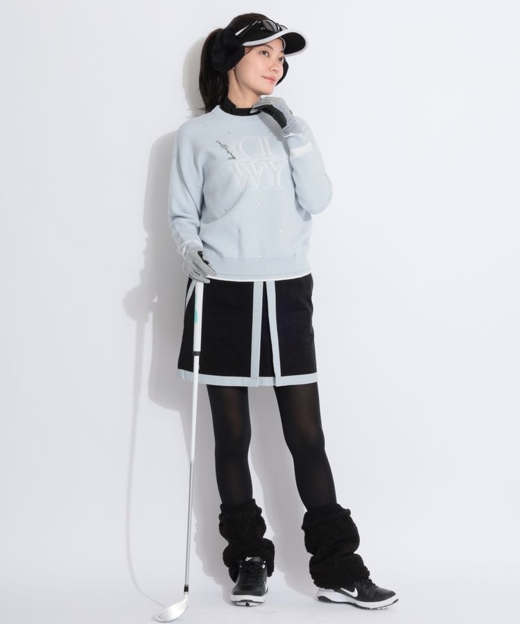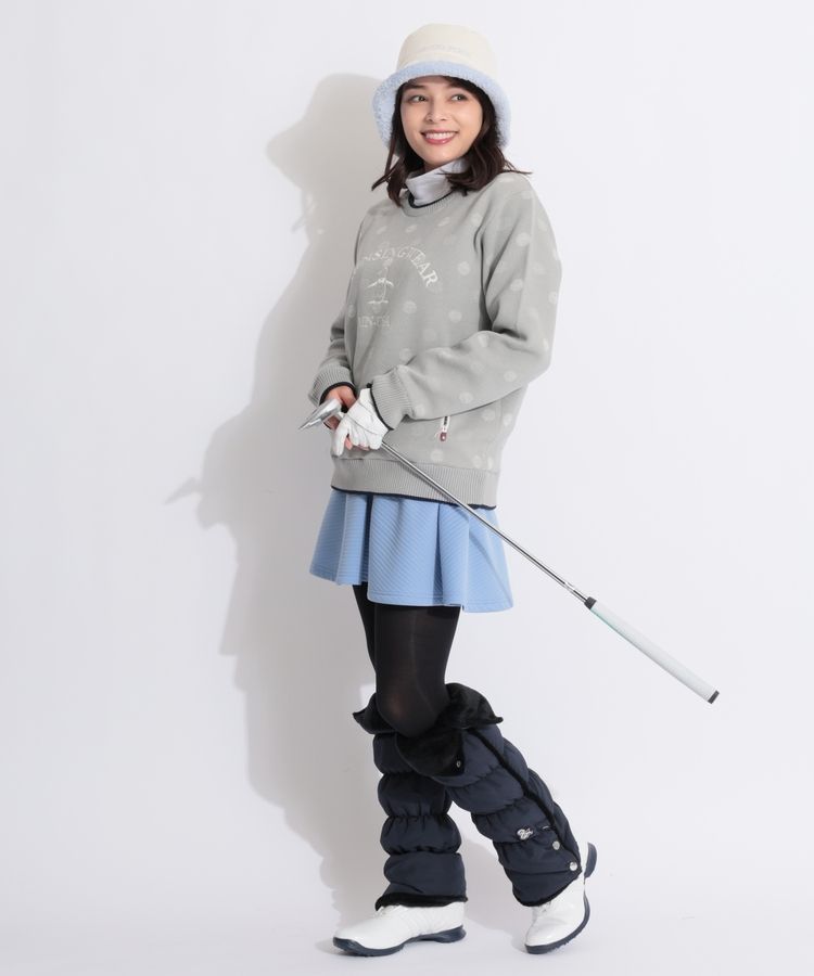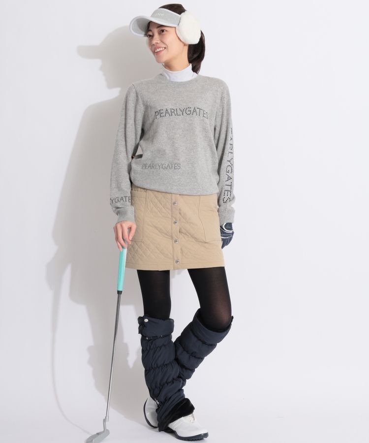 詳細をcheckラインストーンがさりげなく輝く、上品で華やかなジャガードロゴデザイン。 ラウンド後もそのまま街に出られる、大人のきれいめニットです。 しっとりした着心地で、羽織りとも合わせやすい一枚。