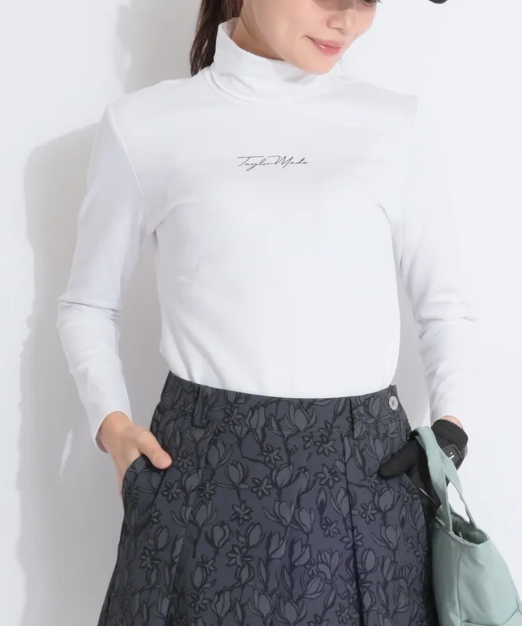 TG 【ストレッチUV】ロゴプリントタートルネック長袖カットソー