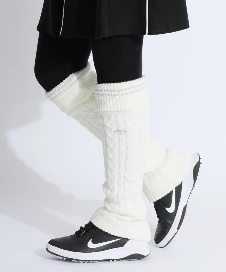 CA ケーブル編みラメラインニットレッグウォーマー