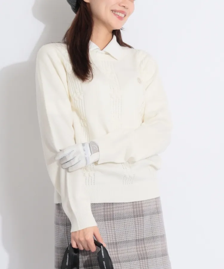 SA アイレットリブフラワーカシミヤ混クルーネックニット