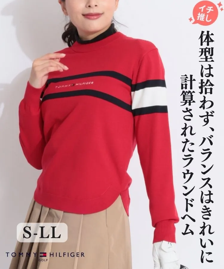 TH マルチボーダー柄ラウンドヘムクルーネックニット