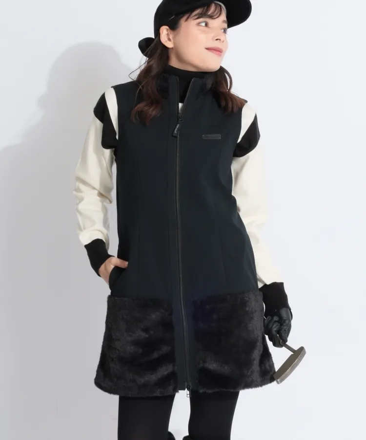 VH ファー切替ノースリーブフルジップワンピース