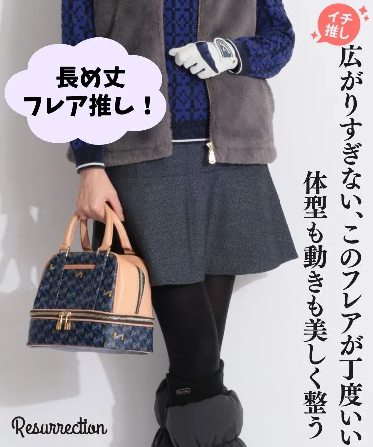 RR 【発熱保温】サイド刺繍ツイードフレアスカート