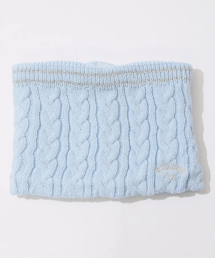 CA ケーブル編みラメラインニットネックウォーマー