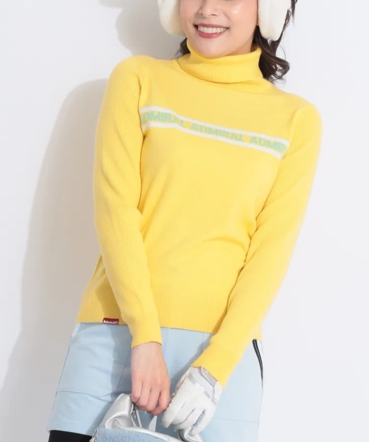 AM 【蓄熱保温】ロゴライン切替タートルネックニット