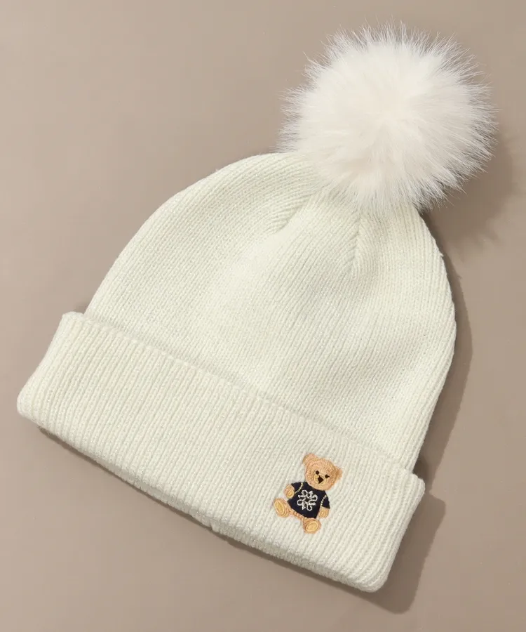 SA ポンポン付きベア刺繍ラメニット帽