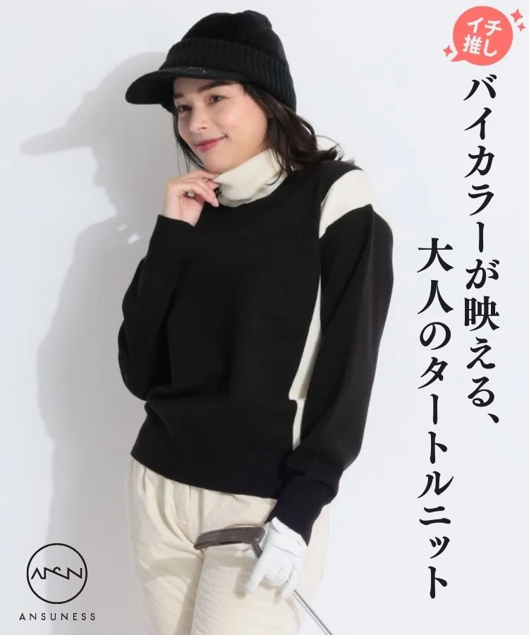 AS 【保温ストレッチ制電】バイカラータートルネックニット