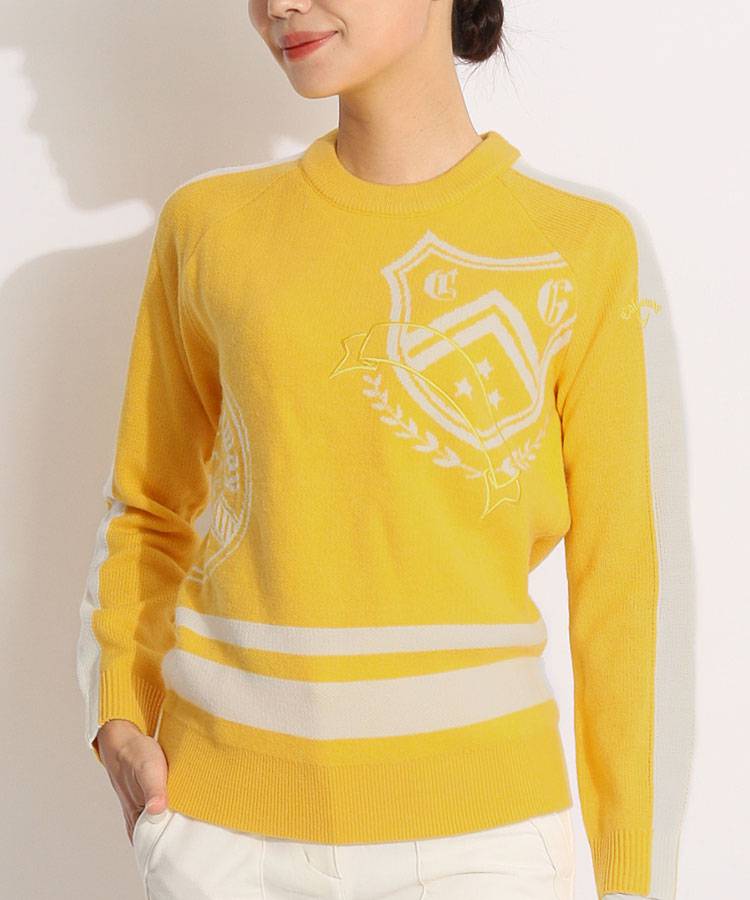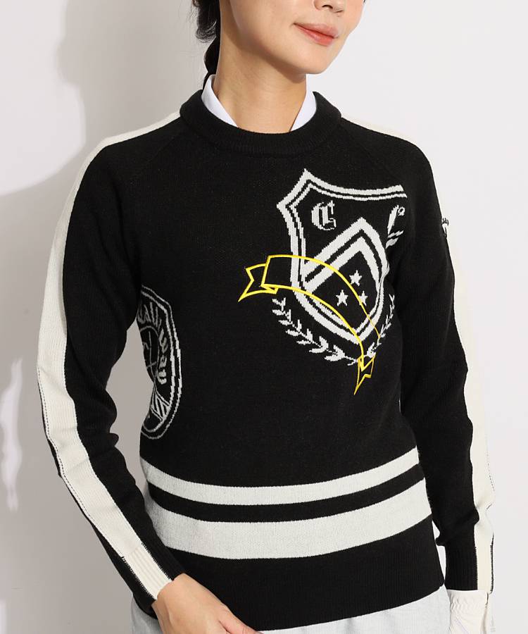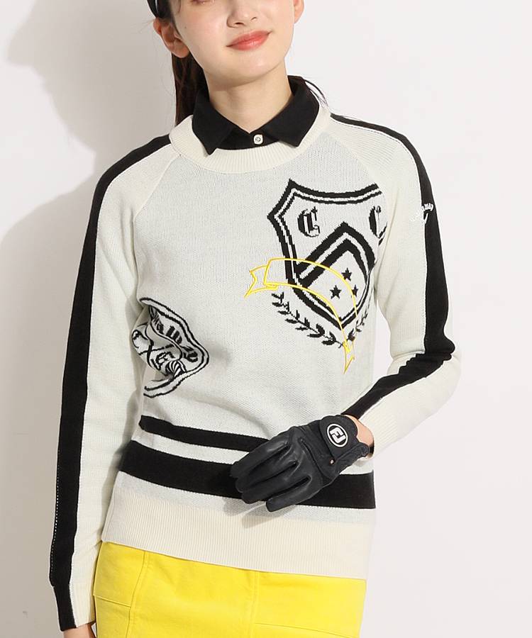 CA スリーブラインエンブレム柄クルーネックニット